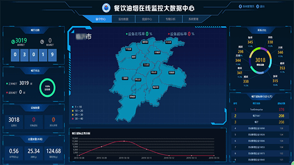 產(chǎn)品概述:餐飲油煙在線監(jiān)控平臺可實時監(jiān)測油煙排放濃度、顆粒物排放濃度及凈化器和風(fēng)機的工作狀態(tài),集成“數(shù)據(jù)采集與管理系統(tǒng)”、“數(shù)據(jù)統(tǒng)計與查詢系統(tǒng)”、“餐飲企業(yè)管理系統(tǒng)”、“報警管理系統(tǒng)”、“GIS網(wǎng)絡(luò)地理信息系統(tǒng)”等相關(guān)功能,實現(xiàn)了不同空間、不同維度圖文一體化的應(yīng)用分析。
